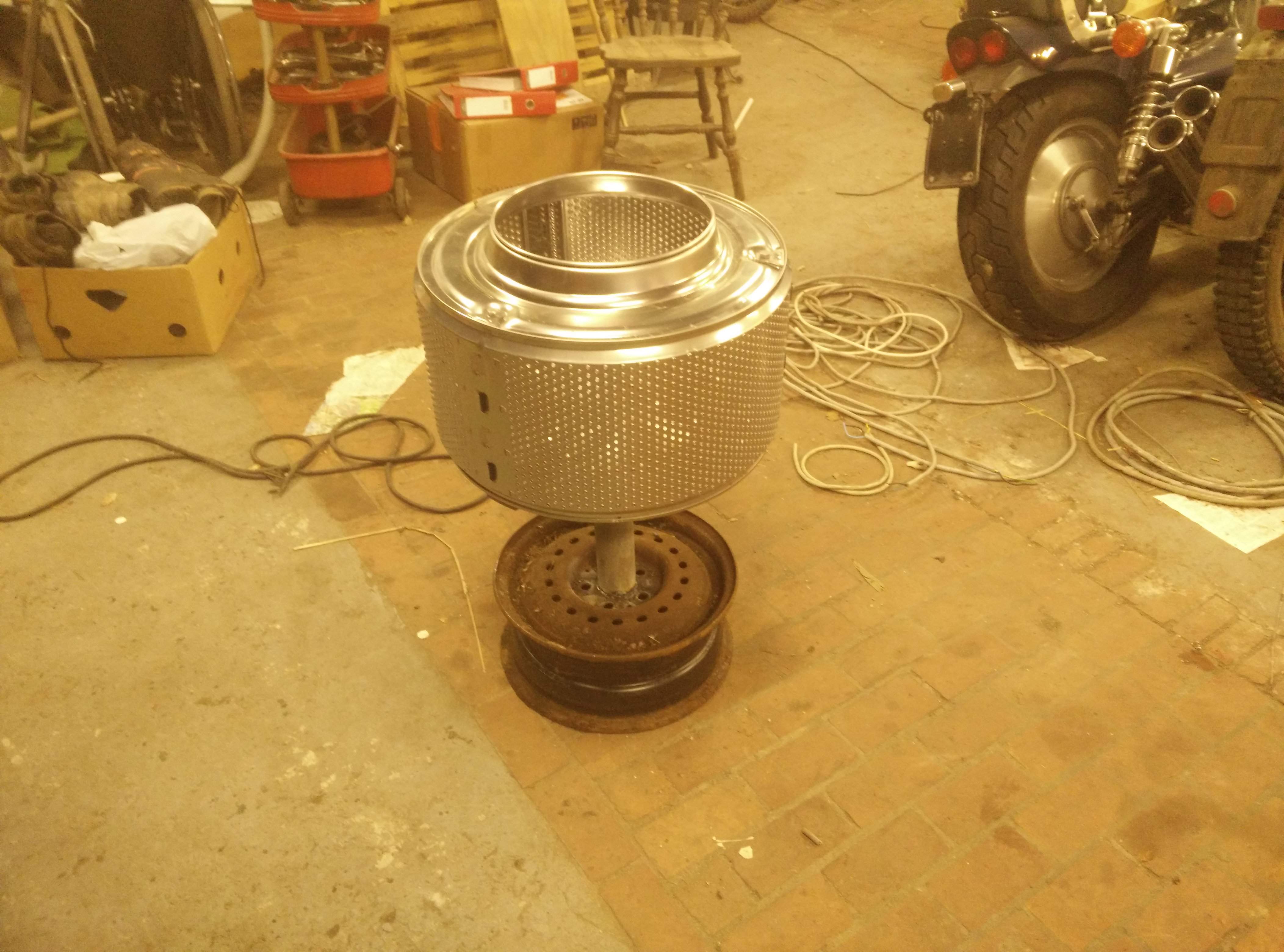 vandaag een dagje vrij gehad, mijn wasmachine omgebouwd naar een vuurkorf, een idee van hierboven.
